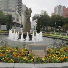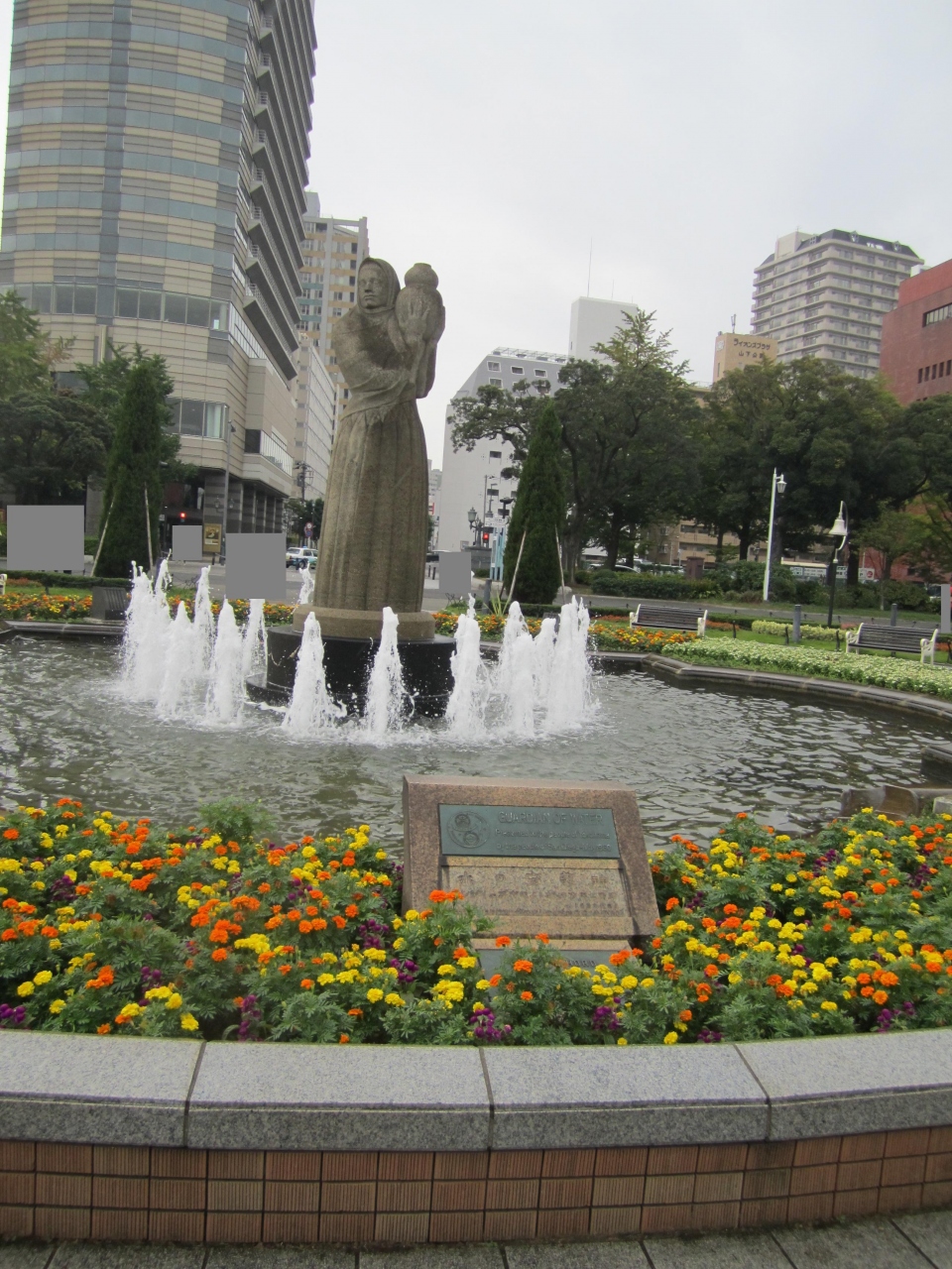 水の守護神像は、山下公園の中央にある噴水のそばにある女性の像です。花壇が周囲を囲っていて美しいです。この像は、米国のサン ディエゴ市から寄贈されたそうです。