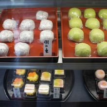 宝塚つるや本舗は、花の道沿いにある和菓子屋さん。づか乙女というのが看板商品みたいですね。きなことよもぎの2種。試食でいただくと、柔らかな求肥っぽい味でした。