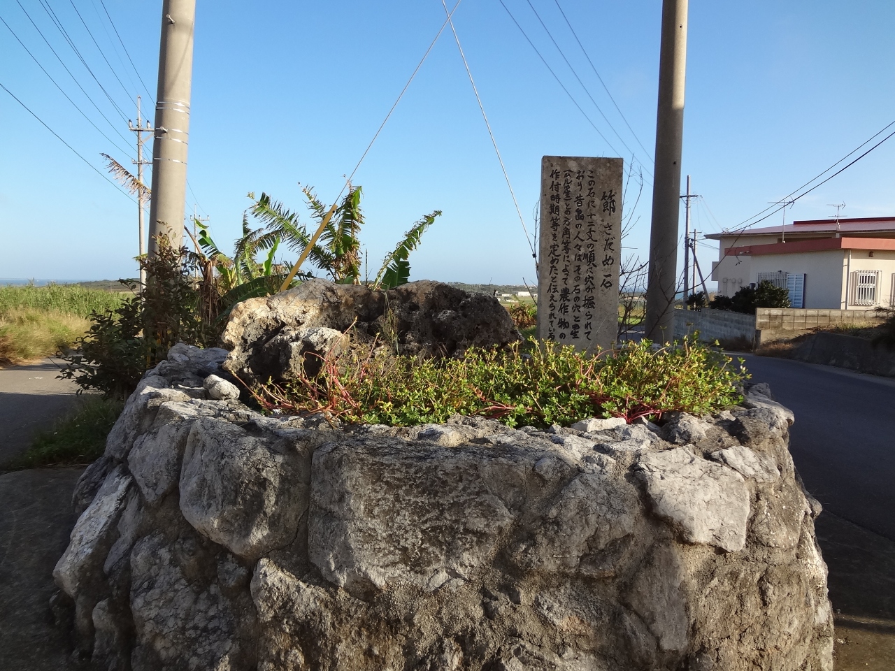 集落からシュガーロードに向かう二股の分岐点のところにあります。この石に十二支の順に穴が掘られていて、小浜島の人々はその石の穴と星との方角等によって農作物の作付時期等を定めたと伝えられています。1976年7月に史跡に指定されたそうです。