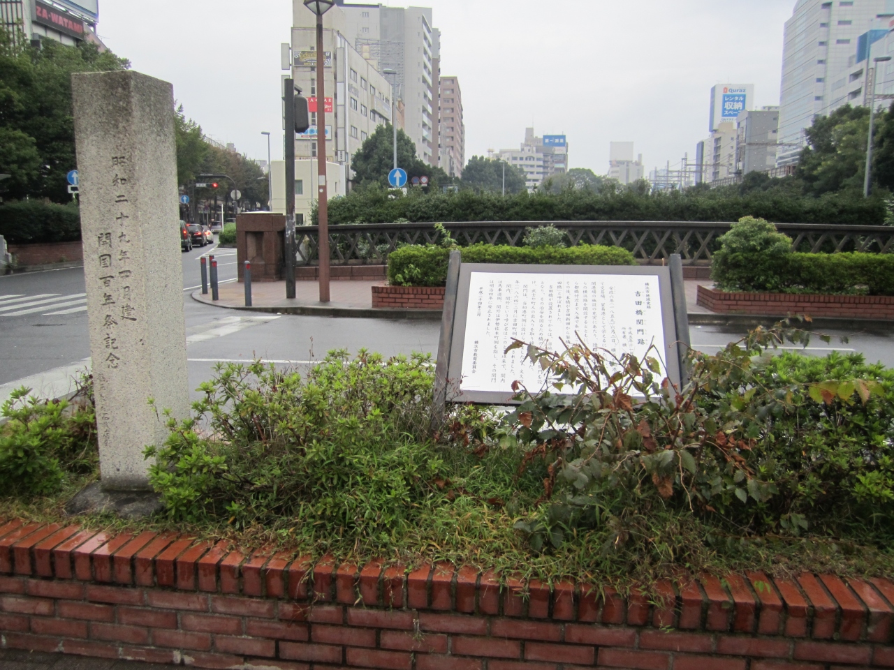 吉田橋 (吉田橋関門跡)は、イセザキモールの入口のすぐそばあたりJR根岸線の高架下あたりにあります。開港直後、開港場への出入り口として、ここに吉田橋が架けられ、橋には関門が設けられだそうです。