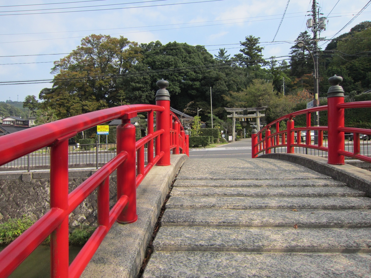 この橋の上に立って、玉造湯神社の鳥居を入れて写真を撮ると恋が叶うそうです。