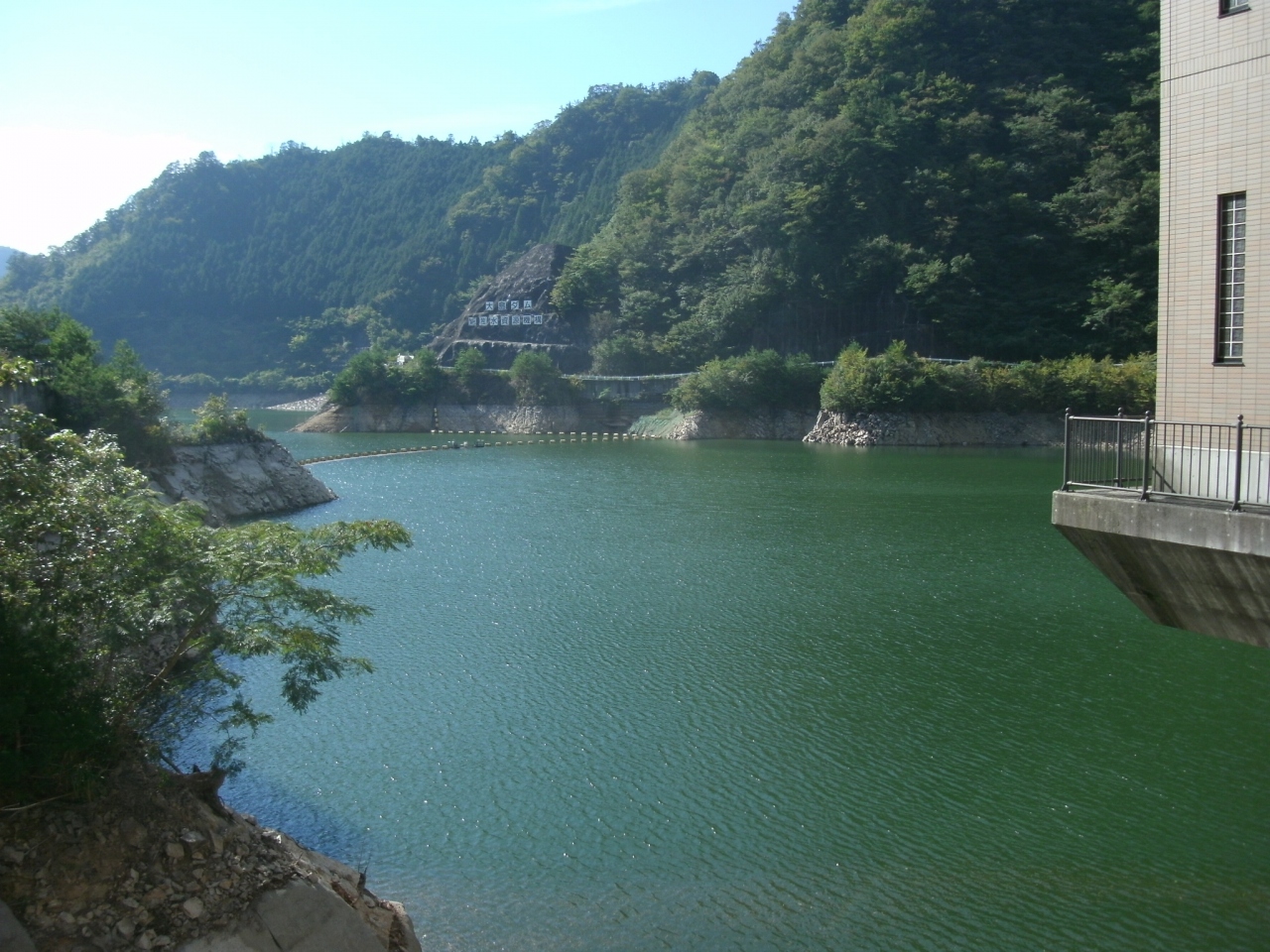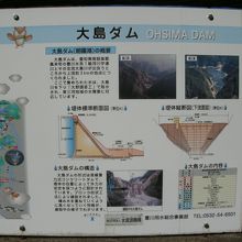 「大島ダム」は、東名高速道路の“豊川IC”から車で1時間余りのところにあります。豊川水系宇連川支流大島川に建設された利水と治水を目的とした多目的重力式コンクリートダムです。ダムによって造られた人造湖は、“朝霧湖”と呼ばれています。無料の展示室があり、ダムの役割などを展示しています。駐車場とトイレがあります。