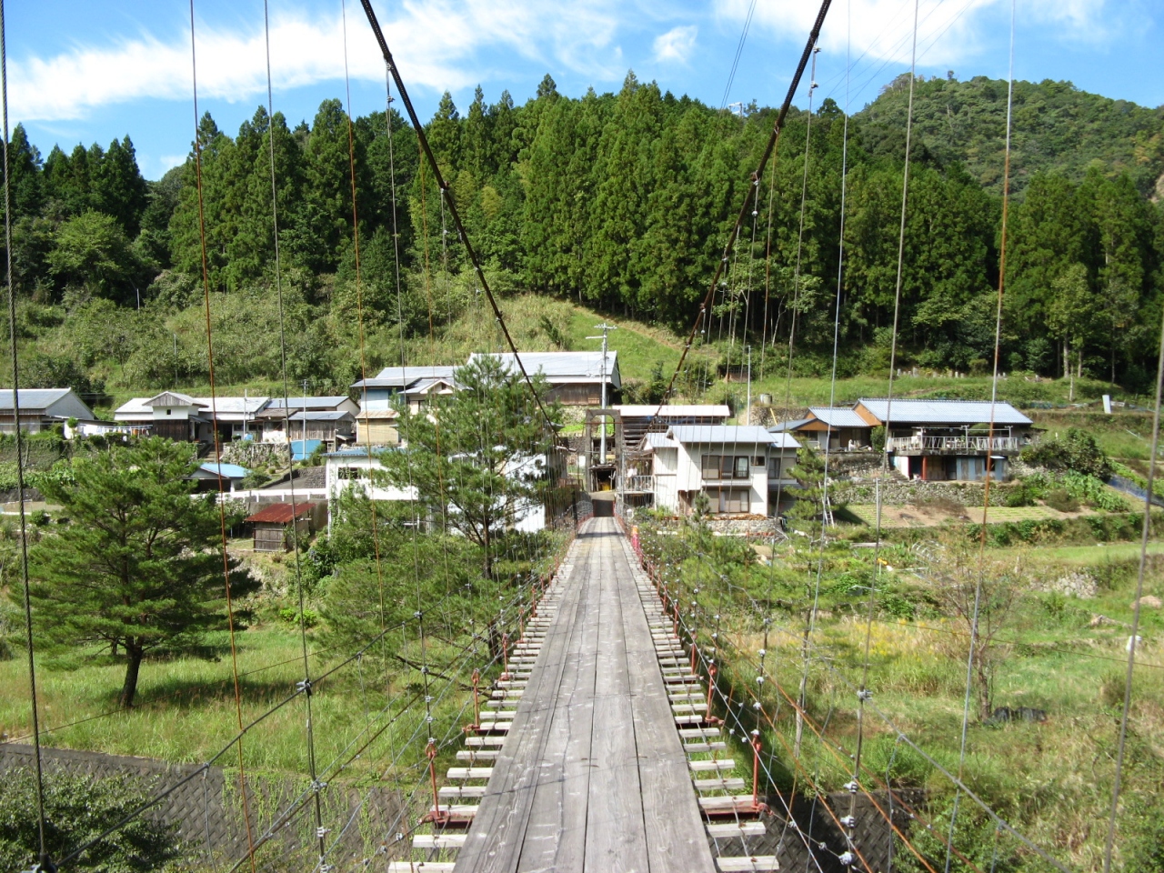 「十津川村」は、奈良県の最南端にある日本で一番大きく広い村(北方領土内の村は除く)です。電車が通っておらず、交通手段は車または、バスでの移動となりますが、高速は通っていないためアクセスは不便です。その分、日本の原風景と言うか、山や川も綺麗で温泉もある、田舎のよさが詰まったいいところです。高野龍神スカイラインから国道425号線、168号線を通って熊野本宮大社に行くときに「十津川村」を通って、西中の吊り橋を渡ったりして、景色を楽しみました。