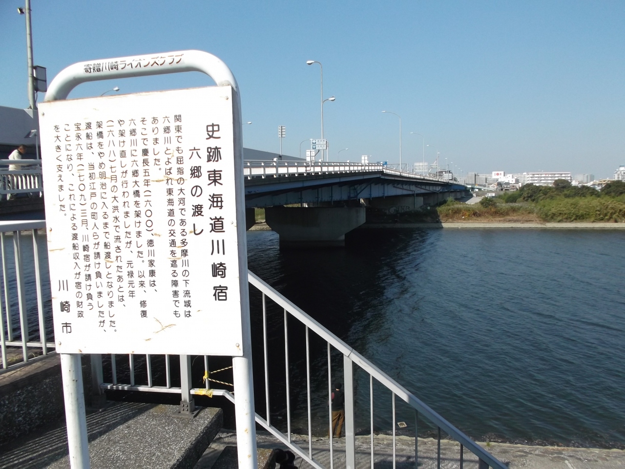 正月箱根大学駅伝で知られる国道15号の都県の境。六郷橋に架かるところの小さな空間、寝そべってる人がいるのでちょっと観光気分にはなれませんでした。