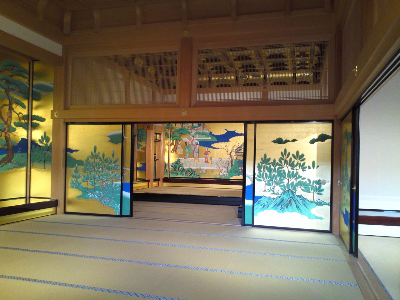 昭君之間は金箔だらけで天井も金箔の上に花などが画かれておりとても豪華絢爛でした。本丸御殿の地下の闇り通りも見ごたえがあります。