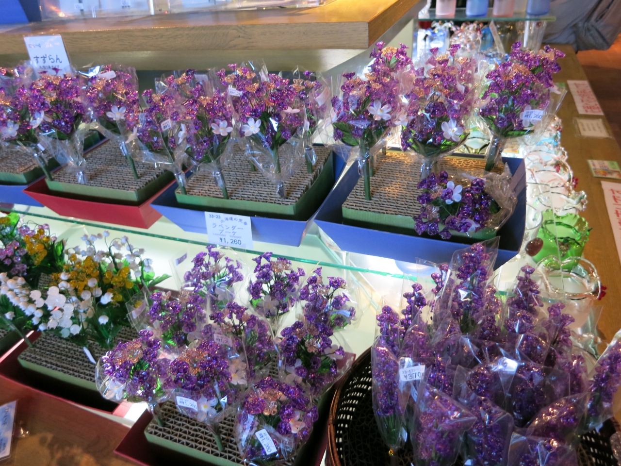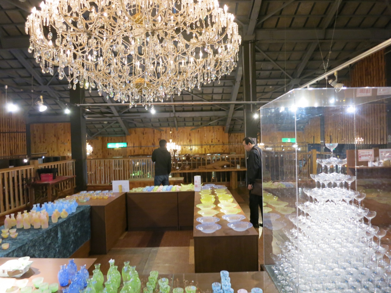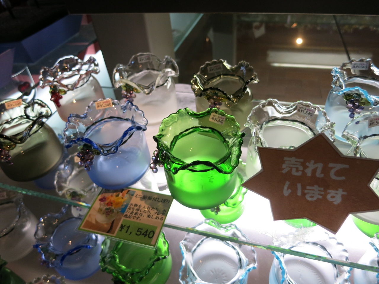 昭和新山の麓、くま牧場や有珠山ロープウェイの乗り場の近くにあるガラス細工を販売するお店です。置物やアクセサリー、グラスなどの製品がたくさん並んでいます。ボヘミアングラスやベネチアングラスなど世界の有名な産地のグラス製品なども、少しですが展示してありました。