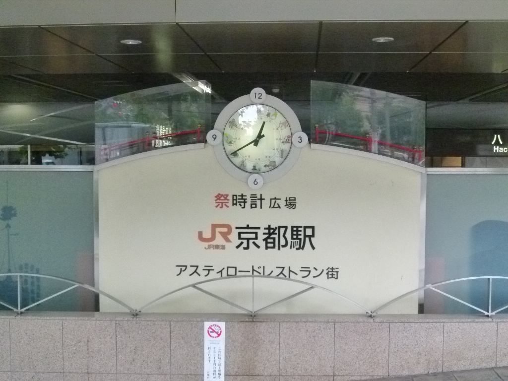 京都駅・八条口にある時計広場は八条口側の待ち合わせに最適ですね。道路挟んだ前が高速バス乗り場があります。以前素通りしてしまって、今回はバッチリ写真撮影。ただ冷暖房のない通路沿いなので夏は暑く、冬は寒いと思います。