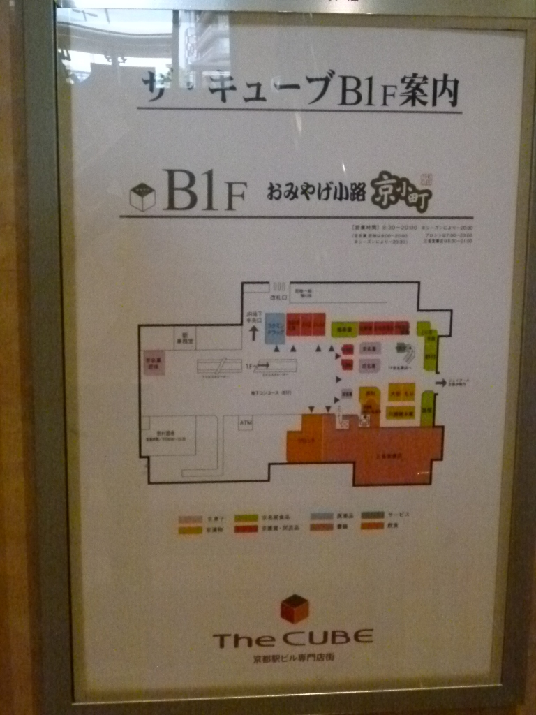 京都駅周辺はショッピングが楽しいですね。The CUBE専門店街は多種多様なお店があります。ファッションショップは地下2階にあります。メンズものは見つけられませんでした。観光客が多く京都は、どこのビルにも京みやげ店が入っていますね。