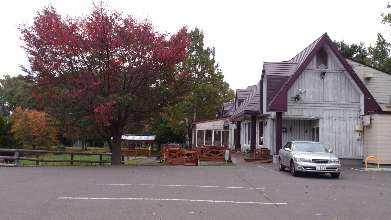 テラスもあり、庭もある開放的なお店。ただ私たちが行った時とは雨模様だったのでなかでいただきました。 ジンギスカンは臭みが気になりますが、ここの臭みは若干?って感じです。 セット1人前で、肉と野菜と、おにぎりです