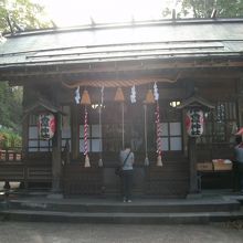 広い境内の一角にこじんまりした本殿があります。子宝と縁結びの神社として知られており、温泉街から近いので観光客がけっこうたくさん参拝していました。境内には東屋やトイレが整備されています。