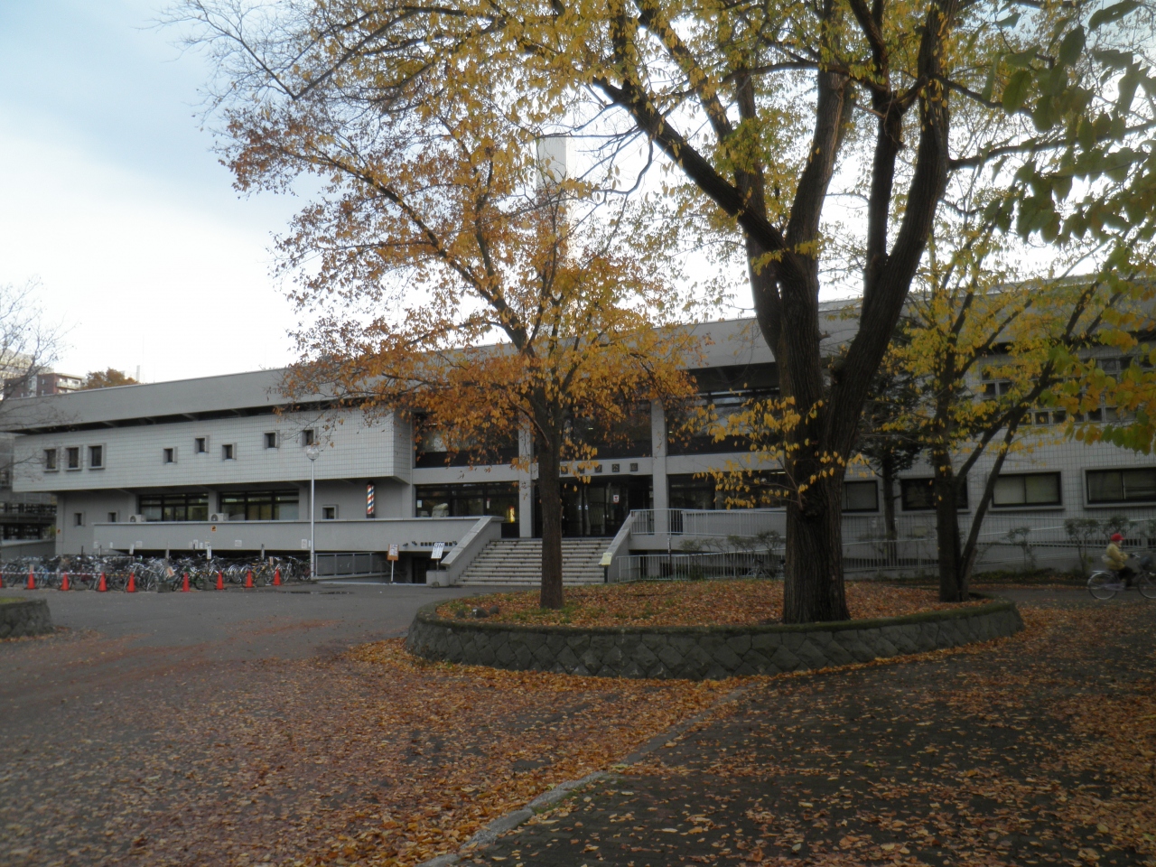 札幌の北海道大学のキャンパスにあるクラーク博士の胸像の近くにクラーク会館があります。 ここには、学生食堂や床屋さんがあって、ときどき人が出入りしていました。 前にロータリーがあって、樹木の葉が色づいて秋を感じさせてくれました。