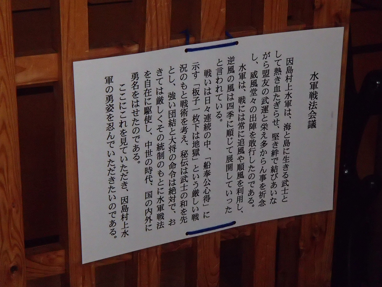 因島水軍城 (いんのしますいぐんじょう)では、水軍軍法会議の様子を人形を使って、当時の様子がよりリアルに勉強できるそんな場所が有ります。強い団結心が伺えます。また、人形の風体から、水軍の勇姿を見る事ができます