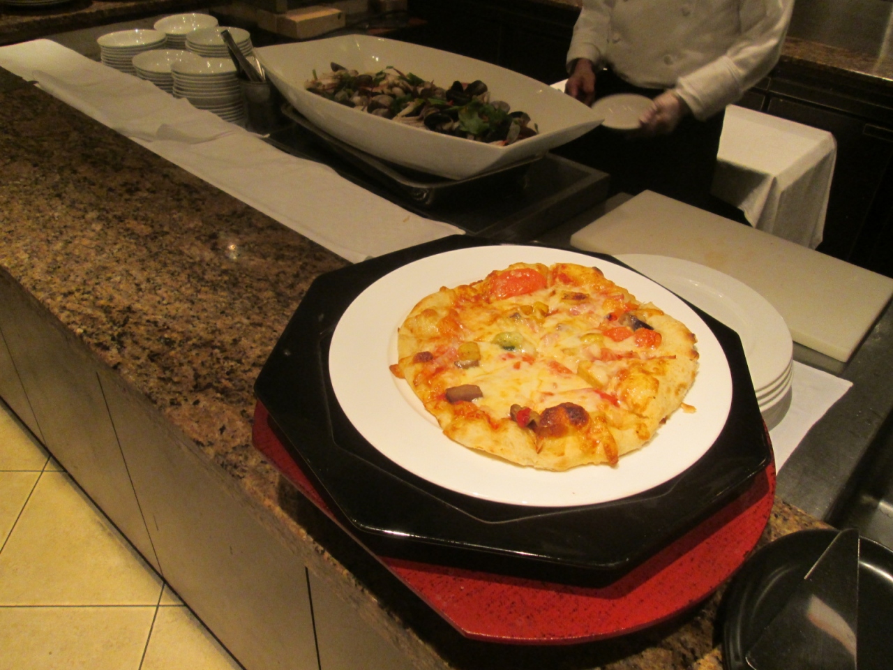 「ANAクラウンプラザホテル沖縄ハーバービュー」のビュッフェ・レストラン「プランタン」にディナータあてイムに訪れました。老舗ホテルではありますが、レストランはリノベーションされて綺麗で洗練されたデザインです。大きな窓の外には沖縄風の美しい庭園があるのですが、ディナータイムの時間には暗くて見えないのは仕方ないですね。定期的にテーマを設けているようで、11月は”贅沢イタリアン”というテーマビュッフェでした。ビュッフェ台のスペースは明るく広めで、和・琉・洋の料理が揃っています。オープンキッチンではテーマに沿ってピザなどが登場してしました。ビュッフェですと、あまり料理に期待できないことが少なくありませんが、「プランタン」の料理は味・質共に満足できましたし、接客も気持ち良いものでした。
