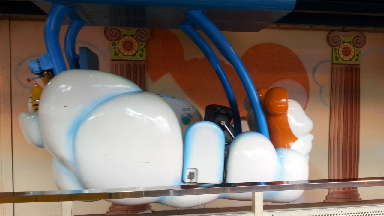 仕方なく、かわいらしいハム太郎の乗り物に乗ったのですが、これも結構怖かった。