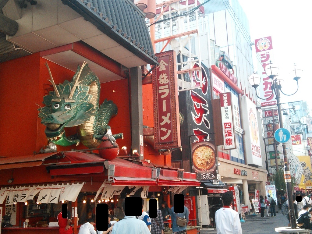 ミナミを歩いていると、さすが「食い倒れの街」の大阪、飲食店が盛りだくさんありますね。その中で「金龍ラーメン」が目立ちます。美味しいラーメンはいたるところにありますが、お店の開放感があって食べやすいです。それと龍の看板が印象的です。