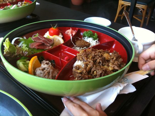 あわじ牛一尺丼です、この丼ものは、一番人気の商品で、野菜も多く食べる事もできます