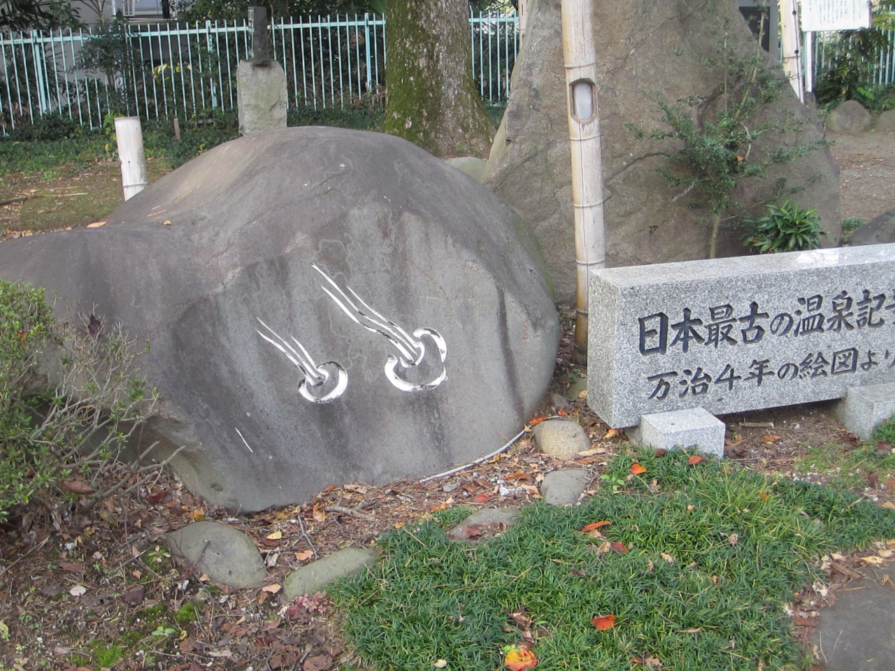磯部公園にある石碑によると万治4年(1661年。4代将軍家綱のころ)に温泉マークが文献上に確認されたと言うことで、温泉マーク発祥の地を主張しています。主張の如何はともかく、温泉の効用としては十分な気がします。多くの文人墨客も訪れたとのことです。