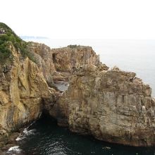 「三段壁」は、円月島、千畳敷と並んで南紀白浜を代表するシンボル的な観光スポットです。南紀白浜温泉の直ぐ南の海に直立する長さ2km、高さ50mほどの大岩壁で、断崖の先端の展望台からは雄大な景色を見ることができます。地下には洞窟があり、断崖上からエレベーターで降りて見る(有料)ことが出来ます。無料の駐車場があります。