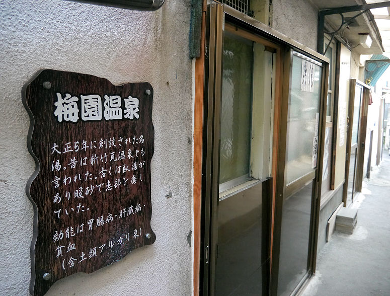 ソルパセオ銀座商店街と弥生銀天街との間にある梅園温泉。