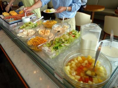朝のサクララウンジのお食事どころ THE DININGは多くのお客さんで賑わっていて、バイキングスタイルの朝食をとっていました。