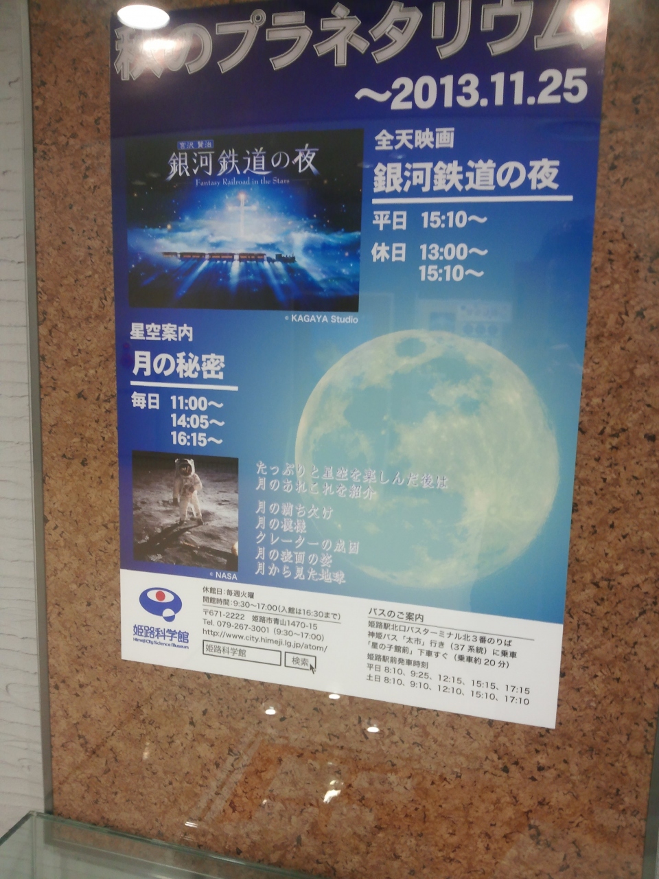 最新鋭のプラネタリウムの機械が導入されていました。解像度も4kあるようでした。日曜日の15:10の部の入りは1/3程度で決行空きがありました。内容は、宮沢賢治の銀河鉄道の夜を題材にしたもので時間は45分ですが出来が良くあっという間に終わってるほどの出来栄えでした。