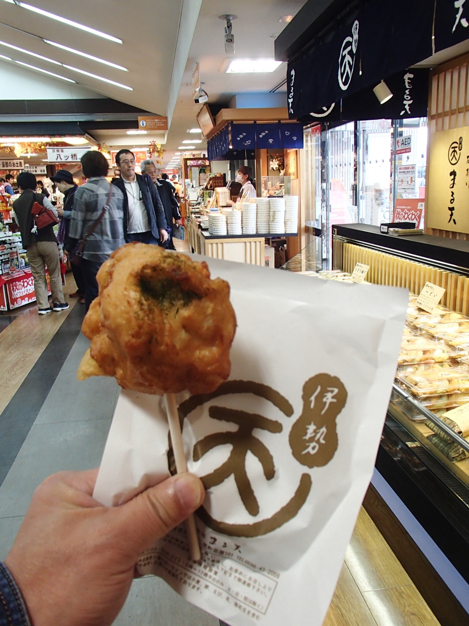 フードコート前にある「まる天」というお店(伊勢に本店があるそうです)でおやつ代わりに天ぷらを買ってたべてみましたが、けっこう美味しかったです!