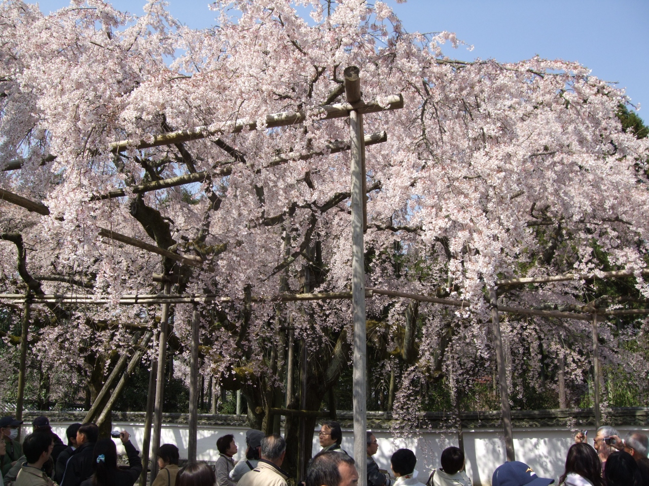 醍醐寺三宝院の三宝院庭園は、醍醐の花見に際し、豊臣秀吉自らが基本設計を行ったものとされ、醍醐寺にあって、安土桃山時代の華やかで豪壮な雰囲気をもっとも感じられる場所だと思います。ただ、内部は撮影禁止。入口の桜が見事に満開で、こちらを必死で写真に収めました。
