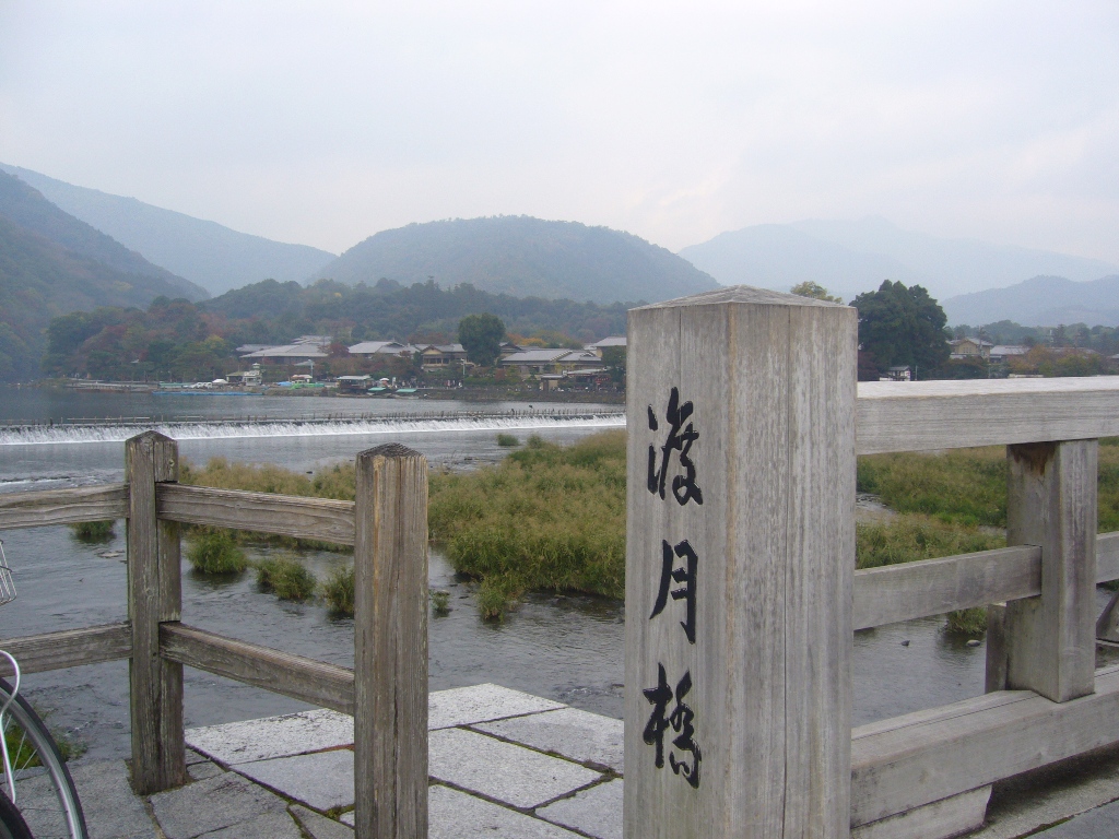 京都・桂川に架かる風流な橋ですね。渡月橋というと浮世絵師・葛飾北斎が描いた渡月橋があります。現在の渡月橋は舗装され両脇の歩道は石畳が敷かれ、一部分を木造で景観を出し嵐山らしい風情が感じられます。ここから見る嵐山や桂川はとても絶景ですね。