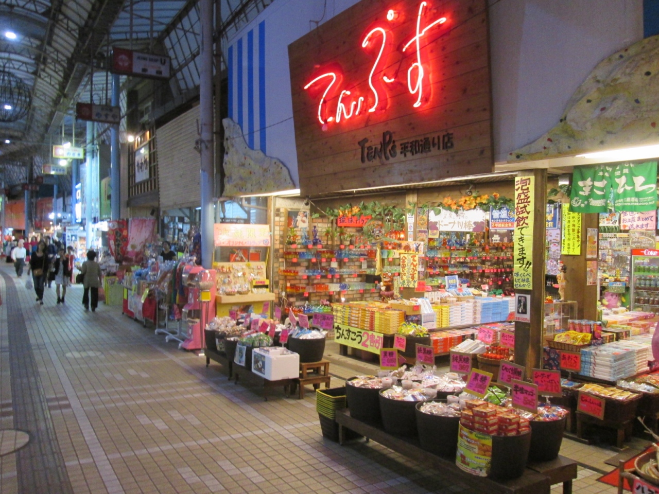 「国際通り」沿いに入口のあるアーケード商店街ですから、ちょっと立ち寄って見ました。うーん…売られている商品は修学旅行生用、あるいは若年旅行者用をターゲットとしたチープな菓子や衣料が目についただけで、大人…少なくともオジさんには楽しい場所ではありませんでした。
