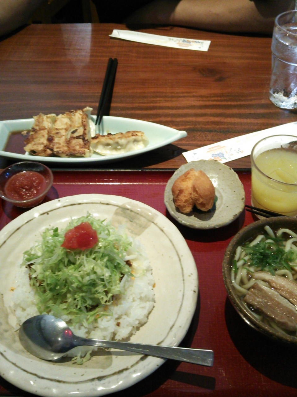 一度は沖縄料理を食べよう!と国際通りを歩いていたところ、タコライスとそーきそばのセットメニューが目に留まり、入ることにしました。