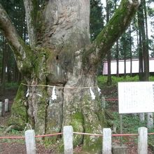 境内は、ご神木で県の天然記念物に指定されている、根元廻り15m、樹齢700年以上のケヤキの大木やスギの巨木で埋め尽くされていて、本殿や神楽殿、末社などの建物があります。本殿背後には嵩山を控え、山自体を御神体としています。訪れる観光客はほとんど居らず静かな神社ですが雰囲気があるし、神社の向かいには、“道の駅 霊山たけやま”があるので、ドライブ途中にでも参拝してみてください。