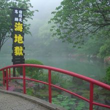 地獄温泉巡りで1番最初に訪れました。とても鮮やかな濃い水色でした。綺麗な色ですが98℃もあるそうです。地獄温泉巡りの中でも印象が強いです。