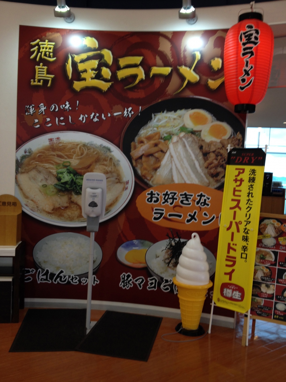 「徳島に行ったら徳島ラーメンを食べてみなよ」と友人に勧められてラーメン屋に入ってみました。でも子のお店の一番のウリは店の名前を冠した「宝ラーメン」らしい。