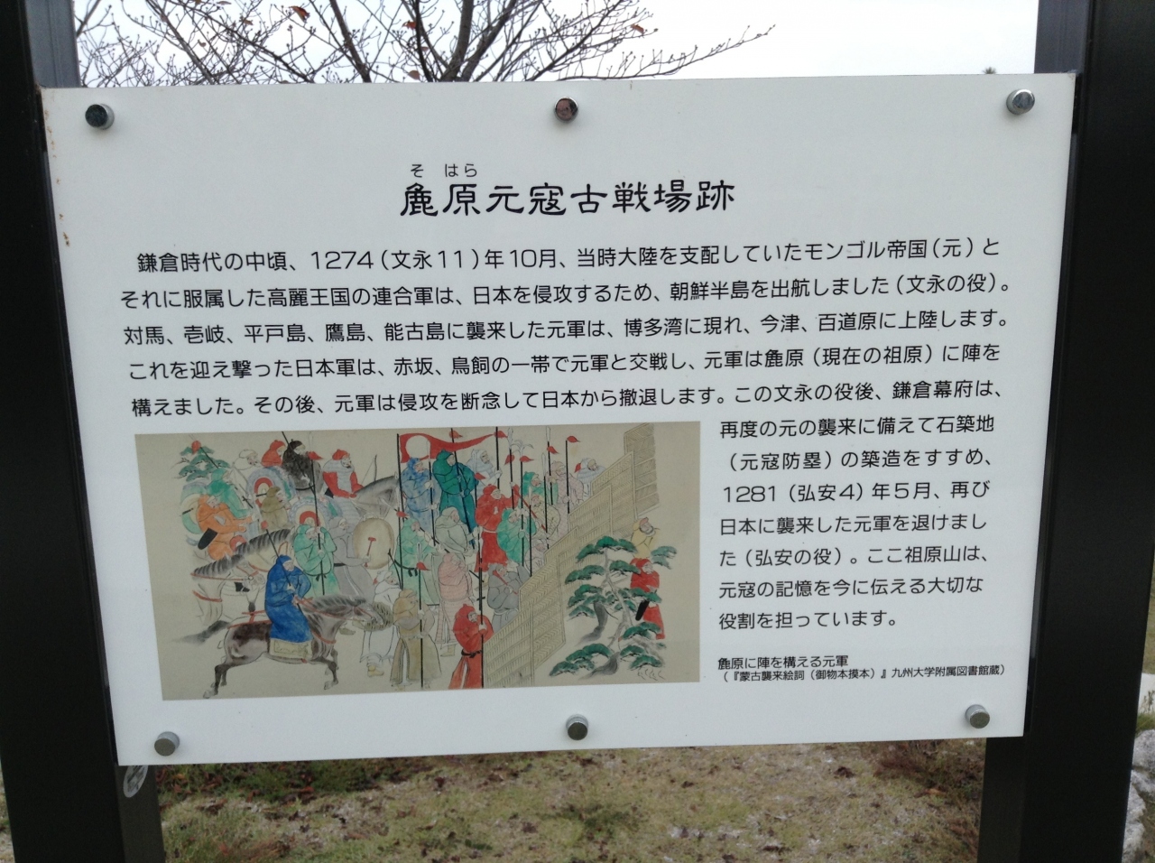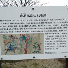 元寇の際に元軍が、陣地を構えた場所で、記念碑が残され、解説があります。