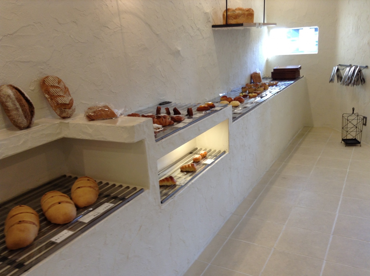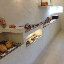 荒江四つ角に平成25年にできたパン屋さん。パンのディスプレイがとてもユニークで、つい買いたくなります。店内は、壁もパンを置く棚も白で統一されています。高級感はありながら値段は庶民的な価格です。
