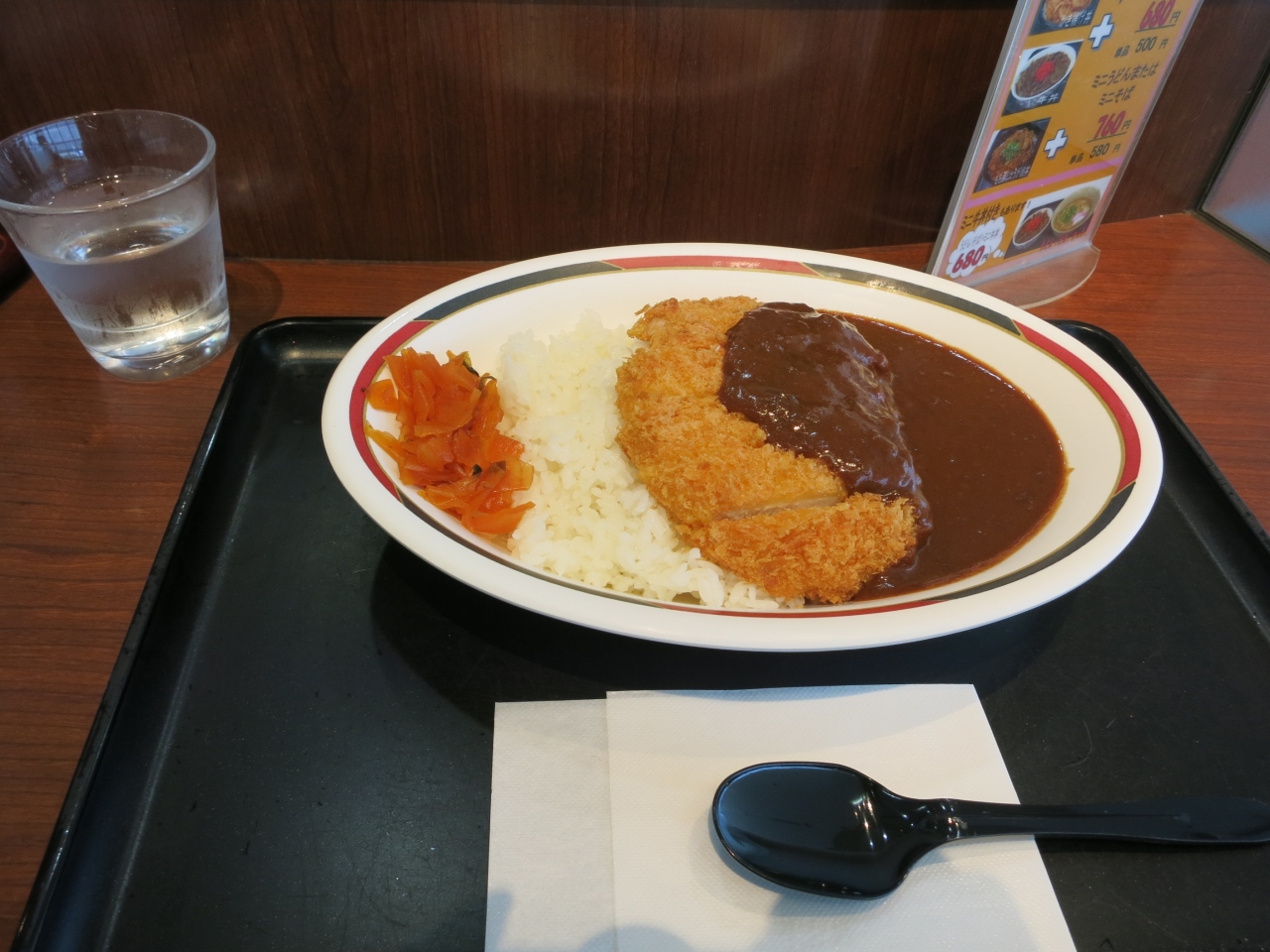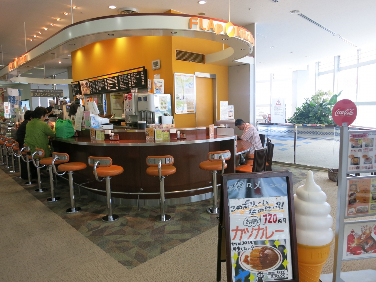 福岡空港の第2ターミナルの出発口から7~16番の搭乗ゲートへ向かう途中、曲がり角の正面に見える店舗なのでよく目に付きます。そこにカツカレー(\720円)とでていました。これから2時間あまりのフライト。少しお腹が減っていたので座ってみました。