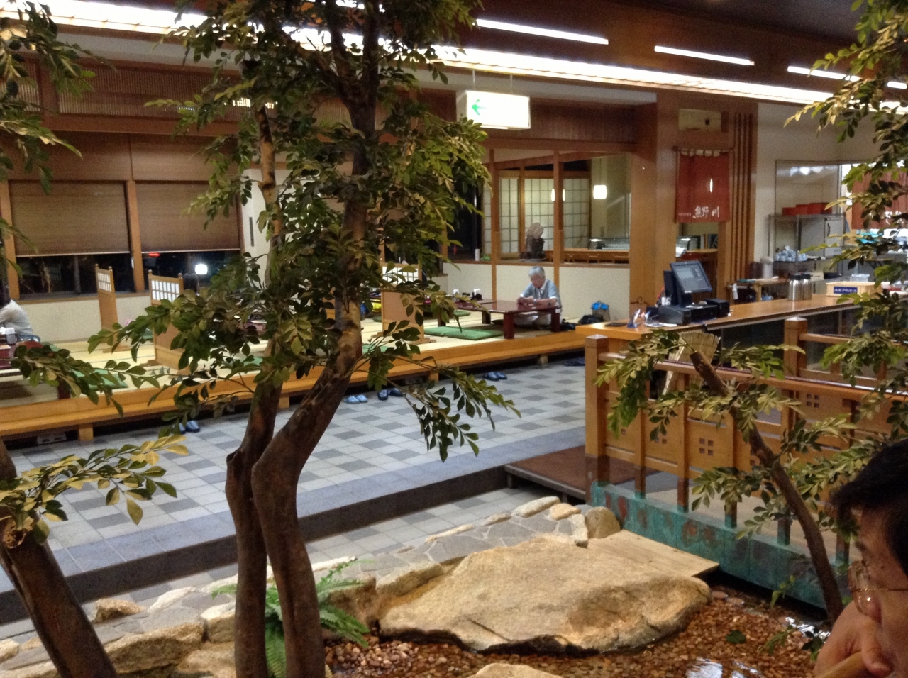 店内を小川が流れる箱庭があり、小魚が泳いでいて風情があります。子供は、結構喜んでいました。