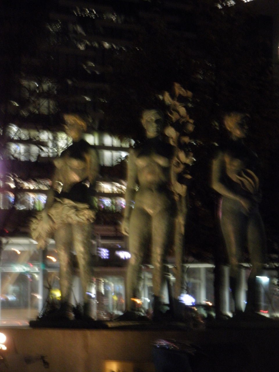 JR札幌駅の西改札口を出て、南口広場への出入り口を出たところに、牧歌の像があります。 南口広場は元の札幌駅があったところで、ここに立つと昔の駅舎を思い出します。 かなり広いスペースなのですが、夜は薄暗いのでライトアップされた牧歌の像が浮き上がってみえました。