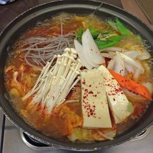 鍋料理は、7種類。ヘルムタン、カムジャタン、ホルモン鍋、ブテチゲ、アグタン、アグチム、キムチ寄せ鍋です。1人前から注文できます。