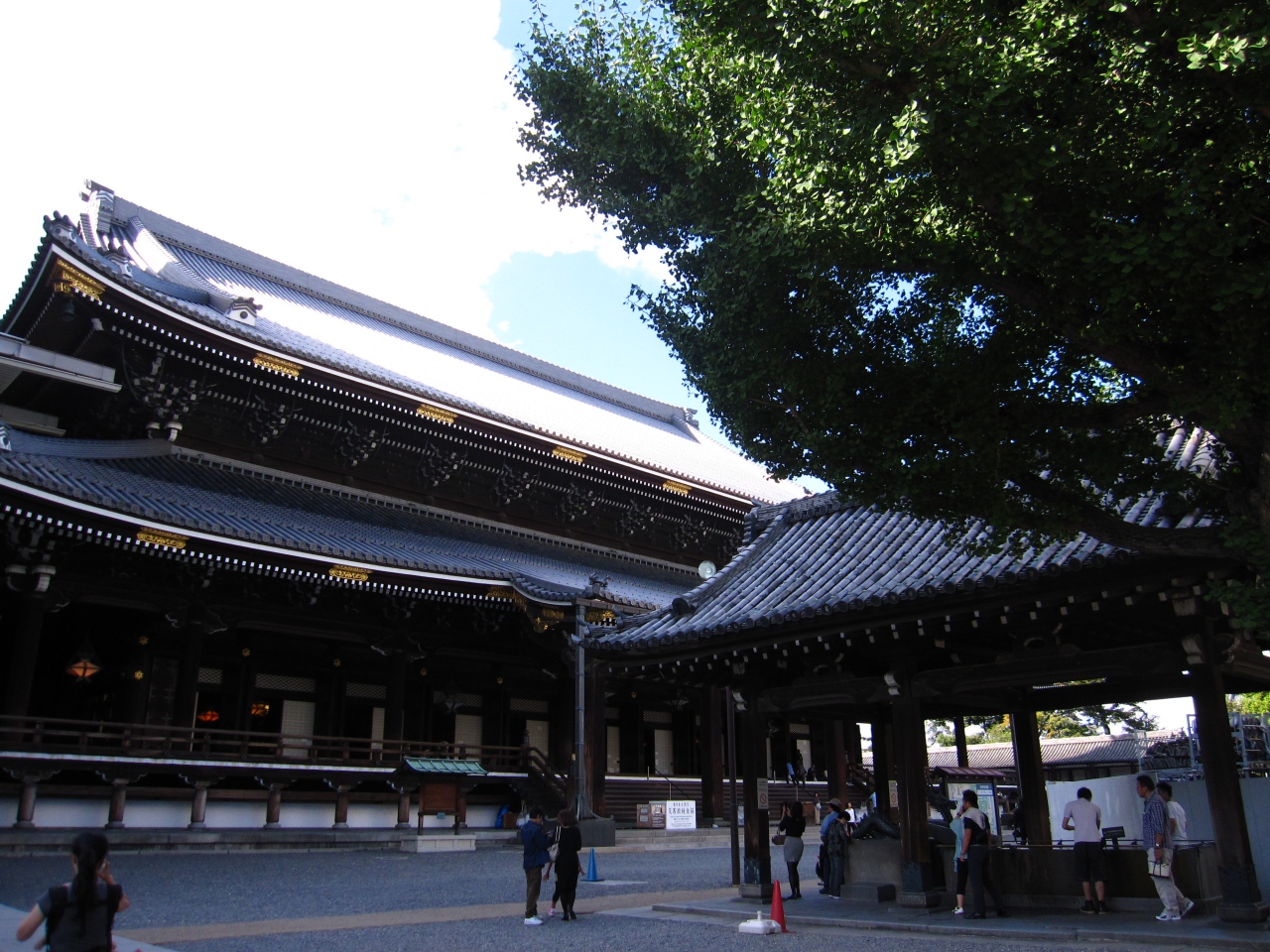 京都駅から徒歩圏内、真宗大谷派のお寺。高校の修学旅行以来です。改修中でしたが、黒く大きい御堂は厳かな感じ。
