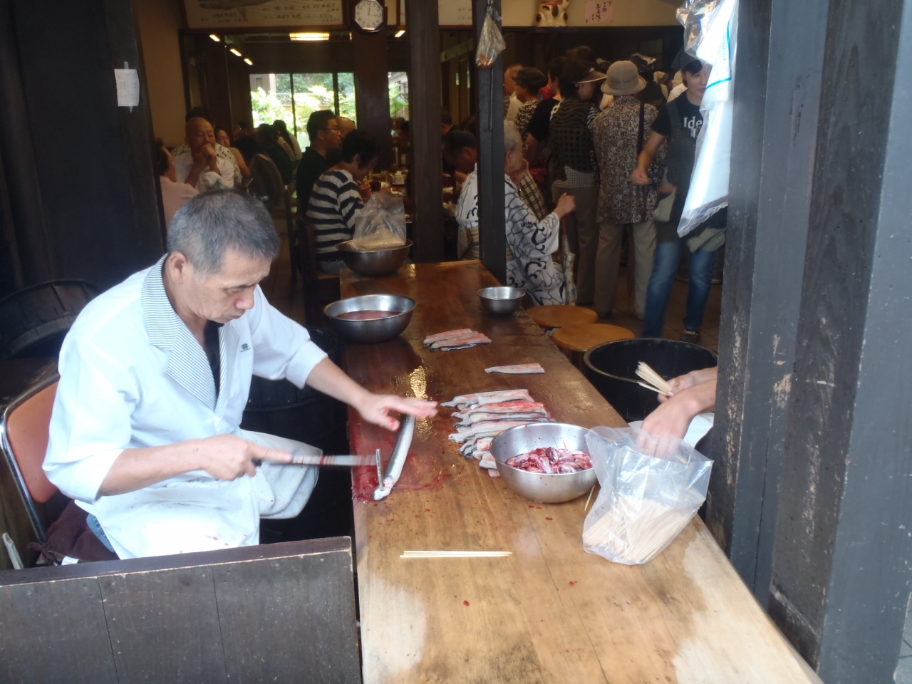 店頭の大きなまな板は、いちょうの巨木から切り出した一枚板。