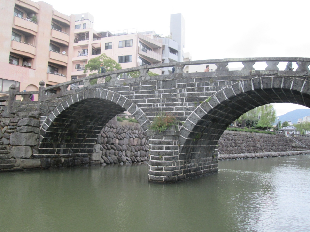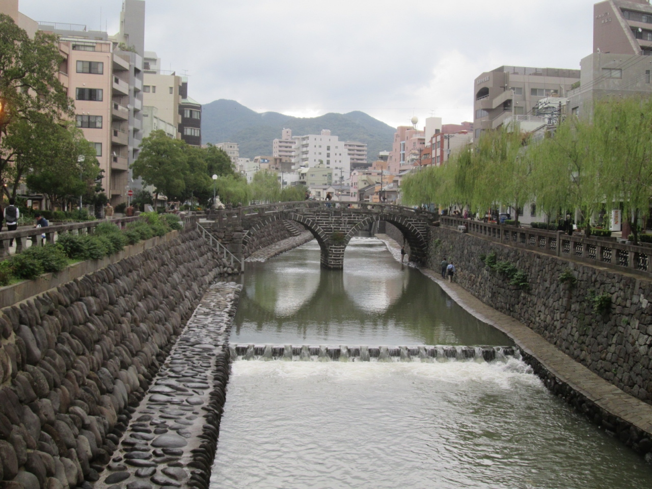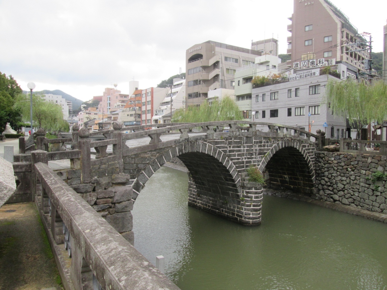 日本初の石造りアーチ橋として有名な長崎の「眼鏡橋」へは、浜町アーケードから散歩がてら向かいましたが、決して遠い距離ではありません。相変わらず橋の上や周辺は観光客やカメラを構える人で賑わっていました。昔の日本の面影を残した橋の佇まいに、少しホッとすることができます。