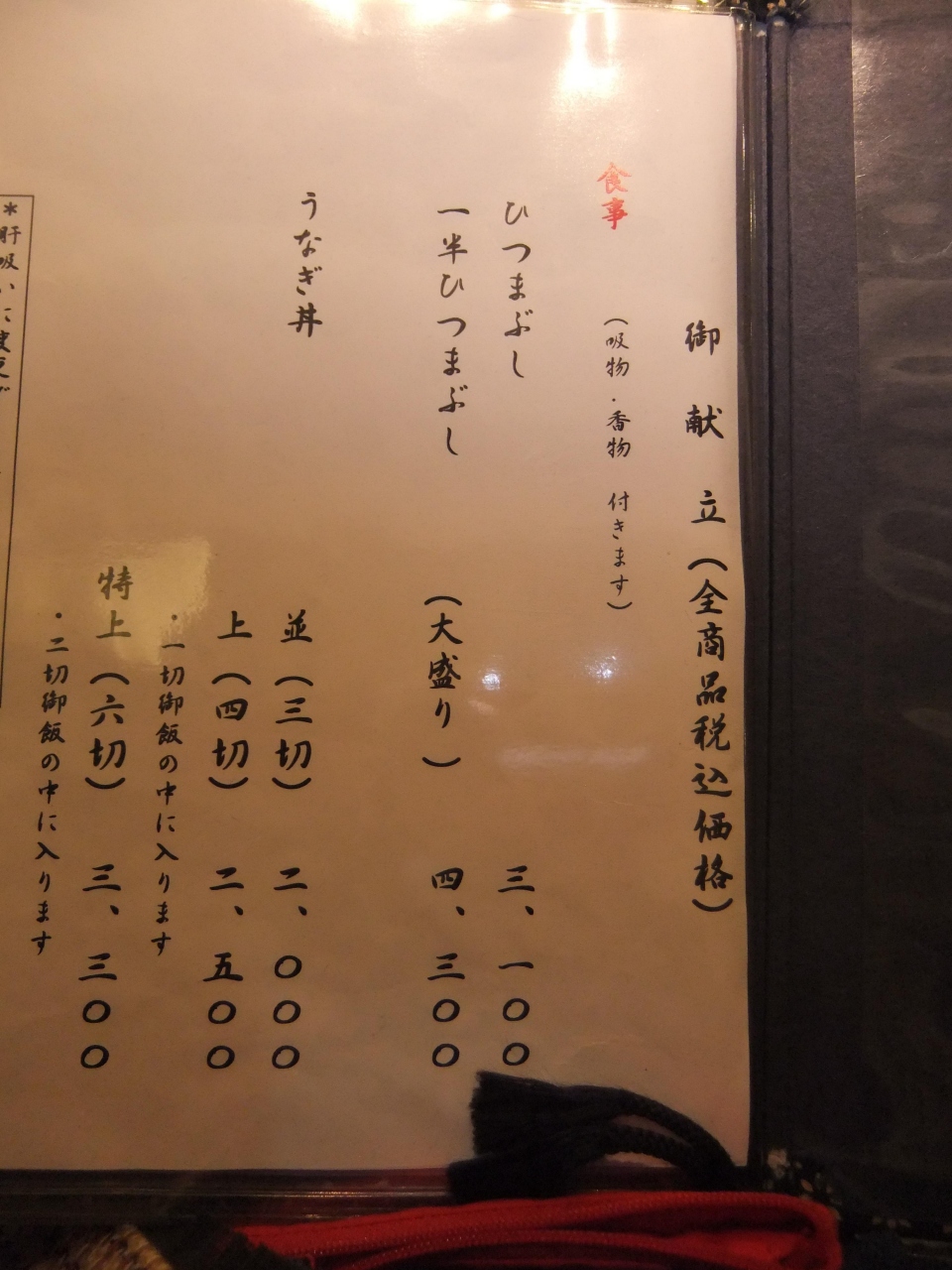 店内は明るく、ひつまぶしだけでなくメニューいろいろでした。