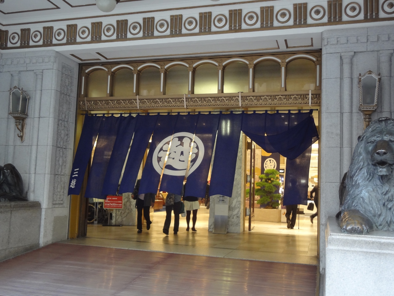 三越の日本橋本店。厳しい百貨店業界ですが、ここ本店は老舗百貨店である三越としての風格を感じる店舗です。本館と新館の2棟が堂々と立ち並び、日本橋の顔として存在感を出しています。館内も多くの人で賑わっており、しっかりとライオンの銅像が鎮座されていました。また暖簾を掲げた入り口があり、これが良い雰囲気でした。