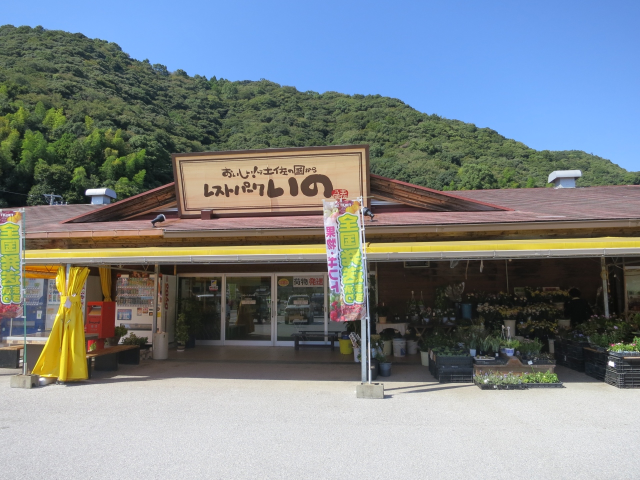 店内には、県内のお酒や地元で取れたお野菜、果物、ゆず製品、土産菓子、地元のパン屋さんのパン、手作りのお惣菜やお菓子などの地場産品が揃っていて、試食も豊富なのでお土産購入には最適です。品揃えは、空港の土産物店よりもはるかに充実していて、この辺りでは一番の充実度だと思います。セルフサービスの食堂も併設されていて、鍋焼きラーメンやうどん、カツオのたたきの他、地元の食材を使った小鉢なども沢山あります。