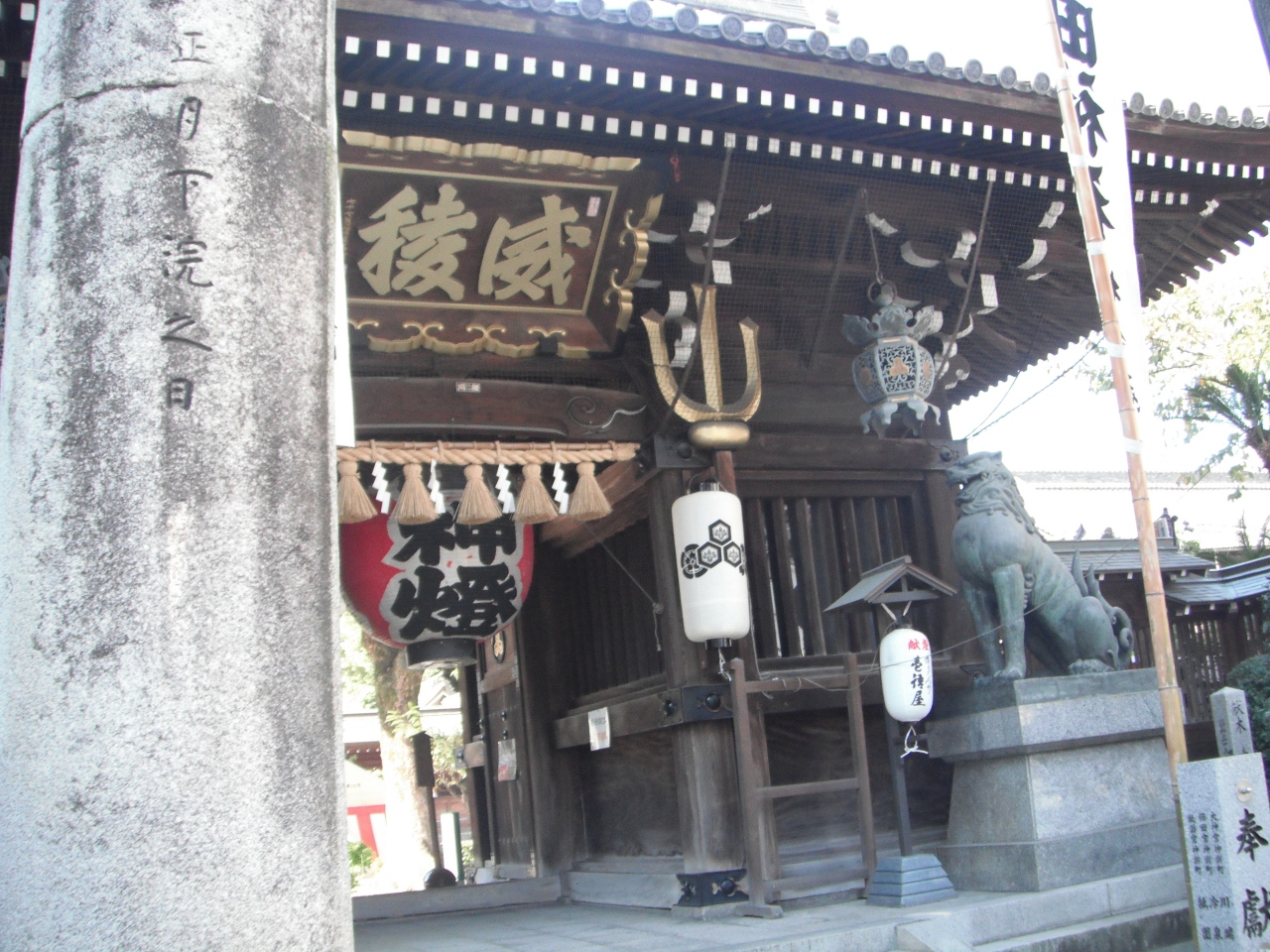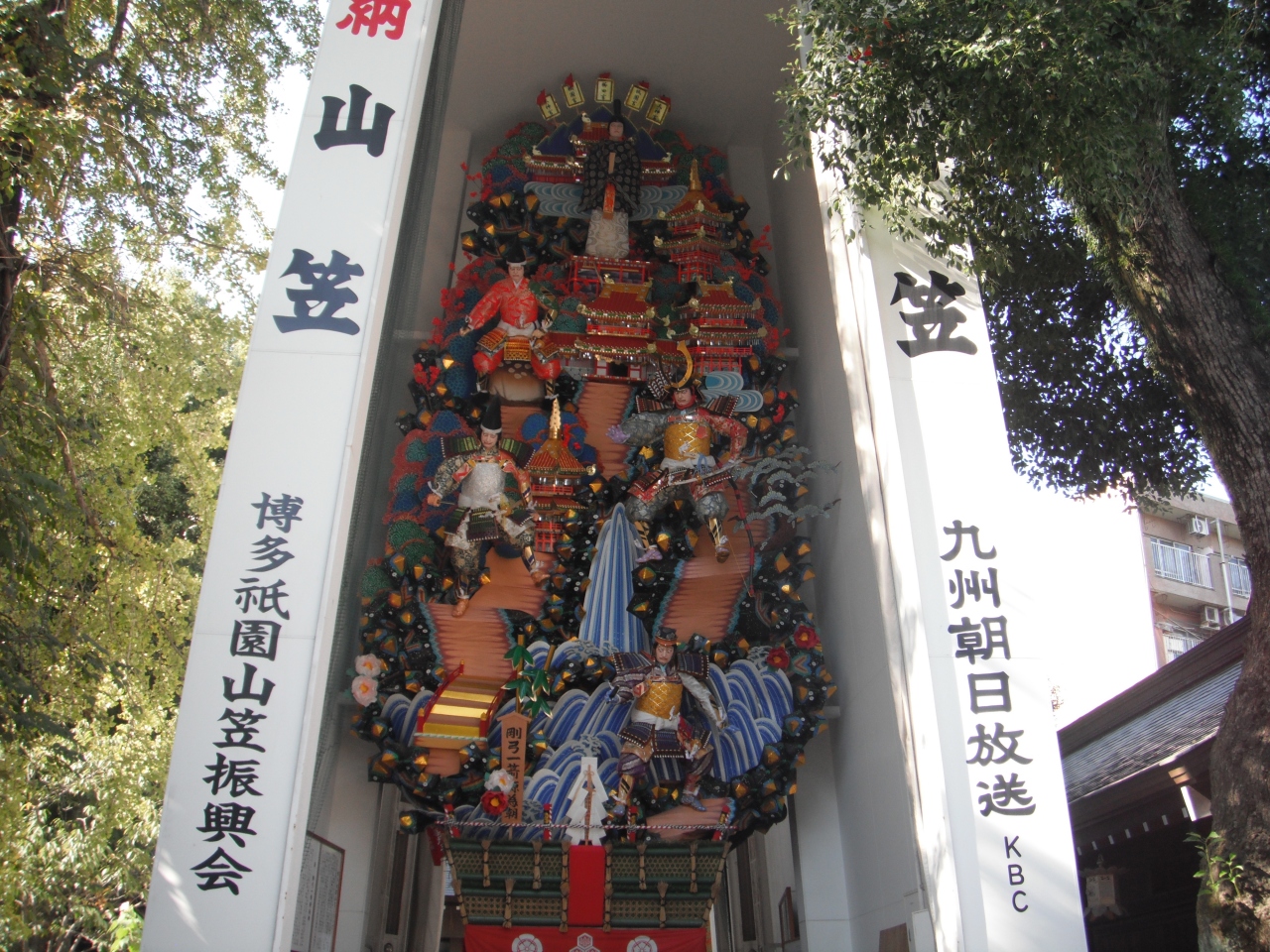 山笠などの祭でも有名な博多の総鎮守、境内に飾り山笠が常設されています。