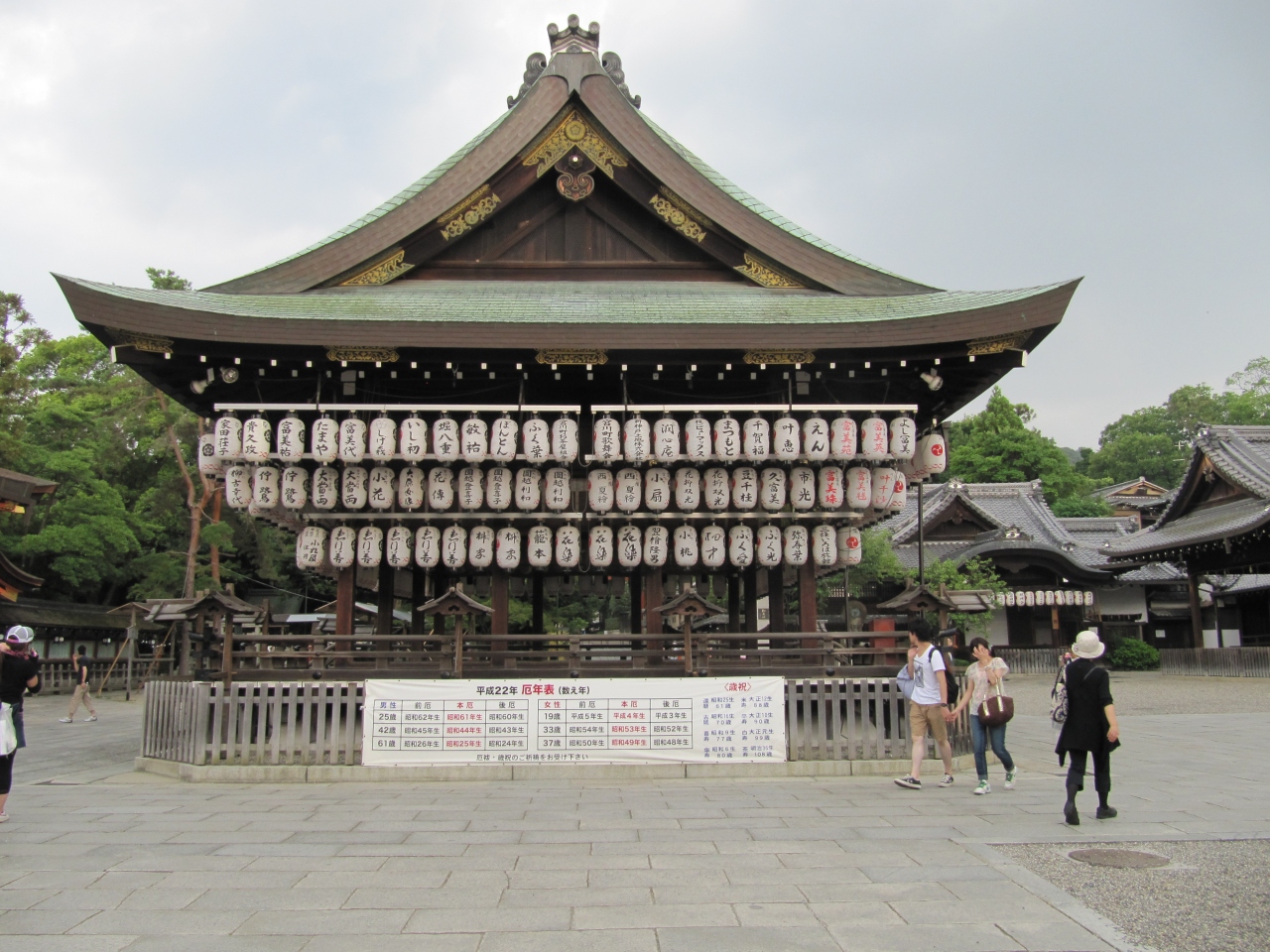 東山地区,八坂にある神社で祇園神社ともいうらしい.京都を代表する神社でいついっても人がいる.特に舞殿が絵になり理想的な写真を撮ることもできると思う.夜にも神社内部に入ることができる.夏にはいい休憩スポット.