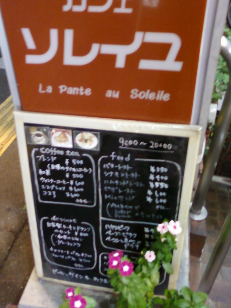 ソレイユさんは、小田急線成城学園前駅の南口から2分くらいのところにあります。お店自体は地下にあるので、結構分かりづらいです。目黒駅などから来るバスの停留所すぐそばにあります。さわやかな女性のお店の人がきりもりしていて、店内は結構常連さんのグループが入っている感じでした。喫茶店と言えども美味しいお食事のメニューが多いのが良いですよね。