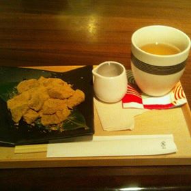 わらびもちには、黒蜜をたっぷりとかけて、食べました。お茶にとても合っていました。