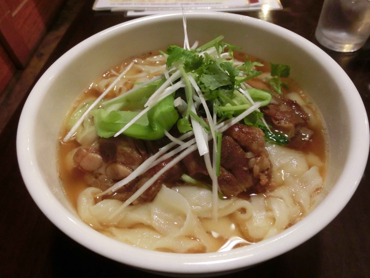 刀削麺は好きですが、スペアリヴのせ刀削麺というのに興味をひかれ、行ってみました。骨付き肉がゴロゴロ入ってましたが、肉は軟らかく、美味しかったです。